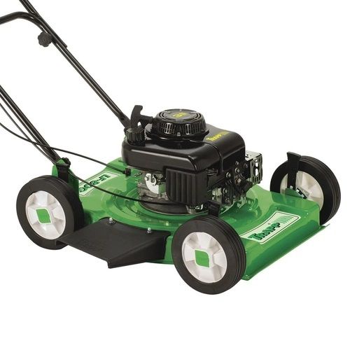 Lâmina em aço especial, de 3mm de espessura, com têmpera por indução no fio de corte, possui saída lateral, regulagem de altura de corte em 5 posições de 2,5 a 7 cm (sistema de regulagem de altura individual nas 4 rodas). Com rendimento aproximado de 800m²/h.