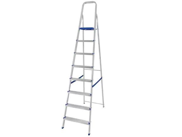 Escada alumínio 8 degraus - MOR, com capacidade para 120kg a Escada alumínio 8 degraus - MOR é leve, dobrável e fácil de guardar, perfeita para consertos e manutenção doméstica.